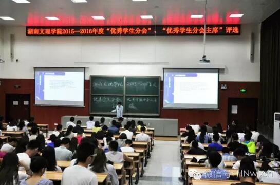 5月13日下午2:30湖南文理学院2015-2016年度“优秀学生分会”、“优秀学生分会主席”评选活动于逸夫楼西附楼D103举行。出席本次活动的有学工部副部长马晗初老师、学生科科长刘晓波老师、学生科曹司帅老师,以及校学生会部员以上学生干部和各分会学生干部代表。此次活动由校学生会办公室主任陈立立和自律部部长马剑平主持。