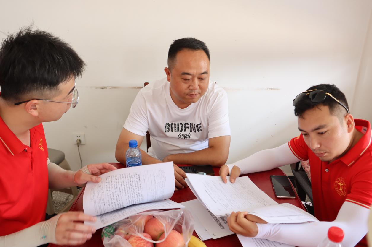 图为团队成员向党总支部书记杨斌了解脱贫户信息。中国青年网通讯员 赵慧 供图
