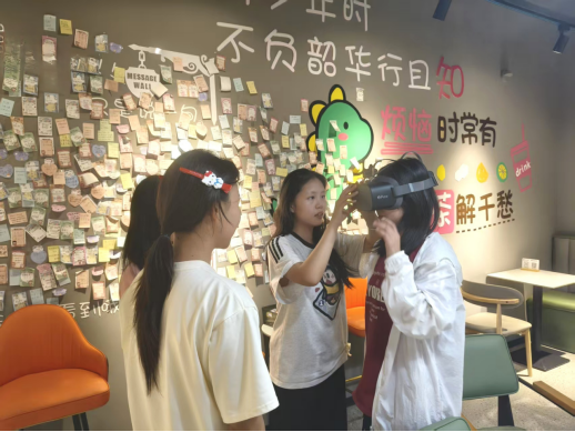 活动现场分为“棋盘心智博弈”与“VR虚拟沉浸”两大特色区域。在棋盘心智博弈区,“人生历程”等经典桌游吸引学生组队竞技,参与者通过逻辑推理与策略对抗释放学业压力,同时拓展心理支持社交圈;VR虚拟沉浸体验区则借助前沿设备,为同学们打造海底探秘、高空冒险等逼真场景,通过沉浸式体验实现情绪疏导。活动参与者2024级音乐学专业田钧杰同学谈到:“在紧张的学习生活中获得了难得的放松机会,通过趣味游戏和VR体验有效缓解压力,在互动中结识了新友”。可见,参加本次活动不仅减轻了同学们的孤独感与焦虑情绪,更提升了校园生活幸福感。