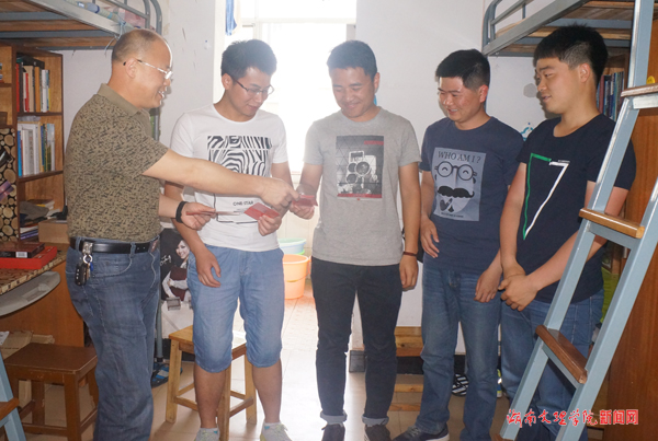 5月3日下午,校党委副书记李敏(左1)教授来到自己的联系寝室,