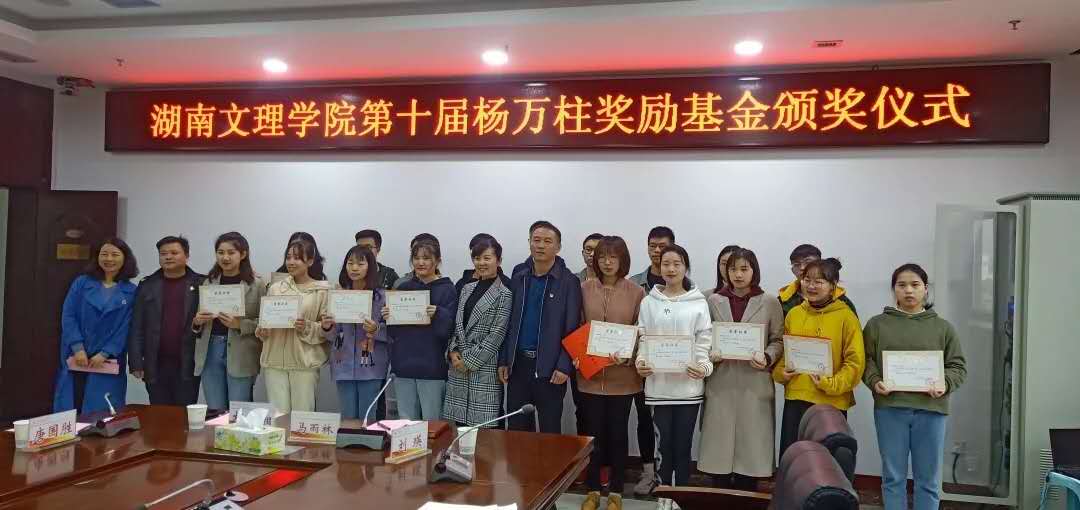 4月4日上午,我校第十届“杨万柱奖励基金”颁奖仪式在逸夫楼A305会议室举行。杨万柱先生的女儿杨玉湘女士,学工部部长马雨林,副部长刘瑛、唐国胜,资助中心主任刘钧,各教学院资助专干及十九名获奖学生参加了仪式。仪式由学工部副部长刘瑛主持。