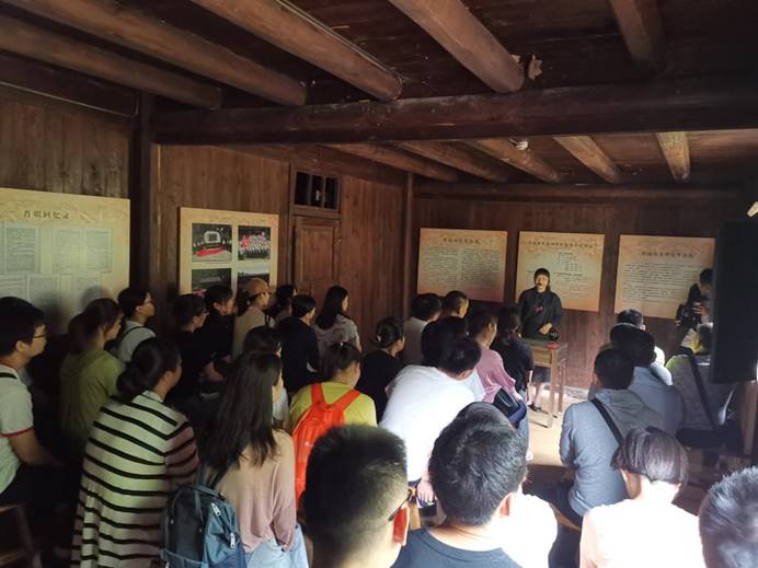 16日上午,学员们来到了大井毛泽东旧居,通过讲解员了解到,在大井“朱毛”故居中留有几大历史遗物——残墙,常青树及读书石,这些旧物经历了当时革命时期的风雨,同时也成为了今日还原历史的见证。在解说员的引导下,同学们目睹了当年国民党进攻大井烧毁房屋留下的布满子弹洞的残墙,看到了象征革命友谊的常青树,也在毛泽东阅读的读书石旁留下了自己的足迹。