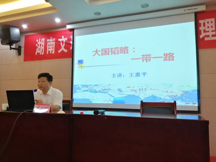 16日下午,井冈山革命传统学院副院长王惠平以《大国韬略:一带一路》为题开展了讲座。讲座从“一带一路”的形成过程和战略构想,以及对外关系的视角下解读和分析这一大国韬略。