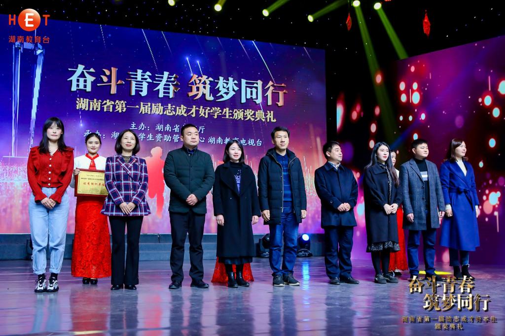 本网讯(通讯员 张一弛)12月27日上午,“奋斗青春·筑梦同行”湖南省第一届励志成才好学生颁奖典礼在湖南教育电视台举行,我校学生蔡薇荣获励志成才好学生典型提名人选,我校荣获励志成才好学生典型宣传活动优秀组织单位并受邀参加颁奖典礼,