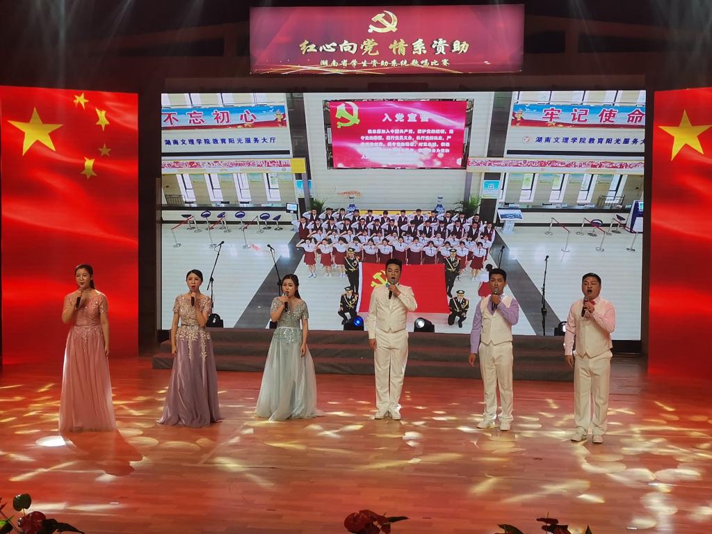 本网讯( 通讯员 张一弛)6月24日,由湖南省教育厅主办,湖南省学生资助中心和湖南教育电视台联合承办的“红心向党情系资助”学生资助系统歌唱比赛在省教育电视台举行,比赛现场通过直播形式同步播出。我校8位辅导员老师表演的曲目《想起他就觉得温暖》荣获三等奖。