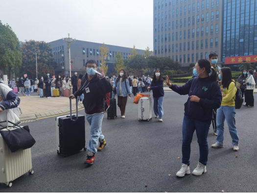当天下午三时许,所有考生都平安顺利到达目的地。要确保此次送考顺利,考生出发前做足准备是关键。为此,学工部统计好考生名单后,专门为考生组织了核酸检测,组织学院逐一查验所有考生阴性检测报告,提前为考生发放适量口罩。为解决好考生们到达目的地后顺利入住问题,学工部25日晚连夜联系了20余家酒店,根据同学们的就近入住需求和酒店大批量接待能力和安全管理实际,最终选定了3家酒店作为考生入住酒店。随后,学工部又赶在凌晨1点多前安排好每一位考生的具体入住酒店和乘坐车次。