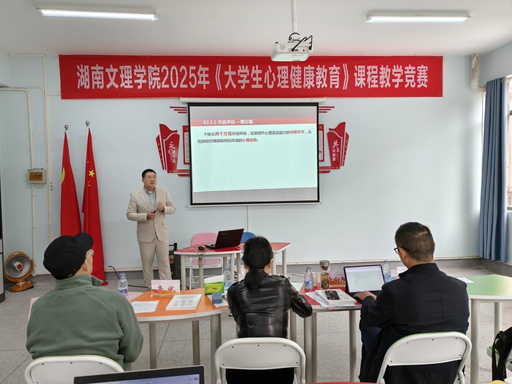 本网讯(文字 张少怡)为深入贯彻《湖南省促进学生心理健康条例》等文件精神,落实立德树人根本任务,10月24日上午,我校在第二实验楼心理健康教育中心大团体室成功举办2025年《大学生心理健康教育》课程教学竞赛,共11名任课教师围绕《大学生心理健康教程》相关章节进行片段教学展示。