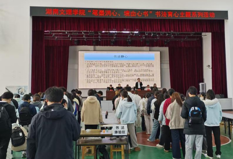 本网讯(文字 李佳琦/摄影 卓宇轩)为进一步创新学生心理健康教育工作,以“三全育人”为导向,丰富心理育人工作形式,营造浓厚的校园文化氛围。11月25日下午,我校联合常德市图书馆在东校区体育馆开展“笔墨润心·境由心书”书画育心主题活动。活动邀请了中国硬笔书法协会会员、湖南省硬笔书法家协会理事符精华,常德市图书馆公共服务部主任曾群等出席本次活动。东校区管理办公室(筹)副主任姚振东,心理中心相关教师参与本次活动。